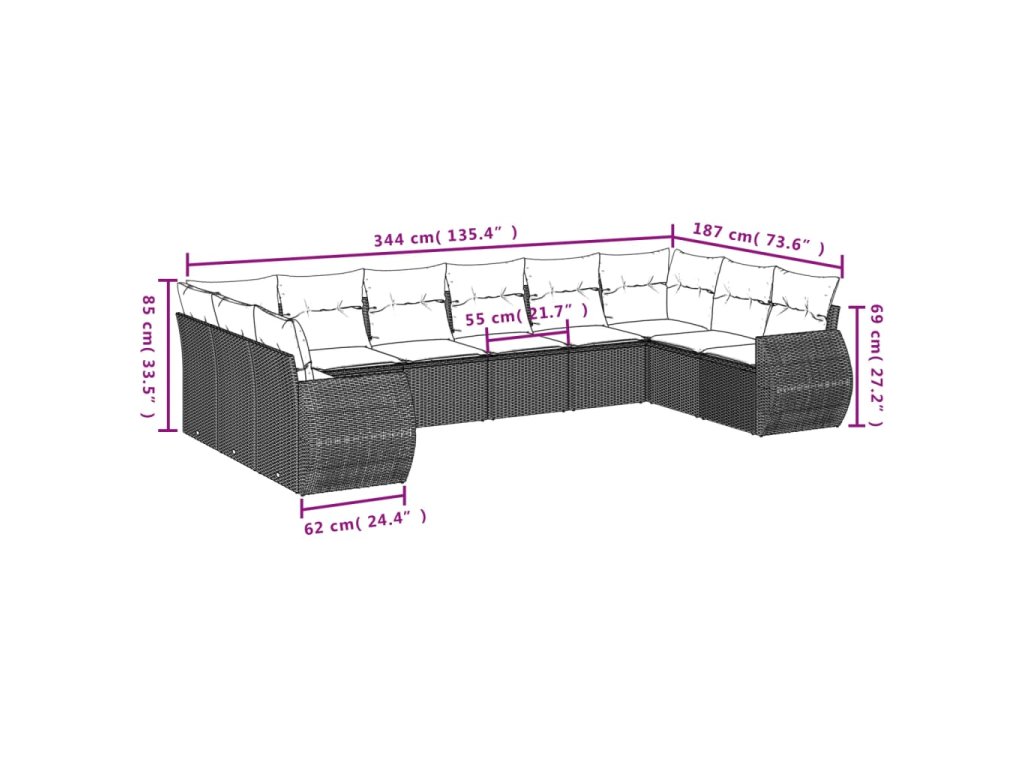 11dílná zahradní sedací souprava s poduškami černá polyratan 3254213
