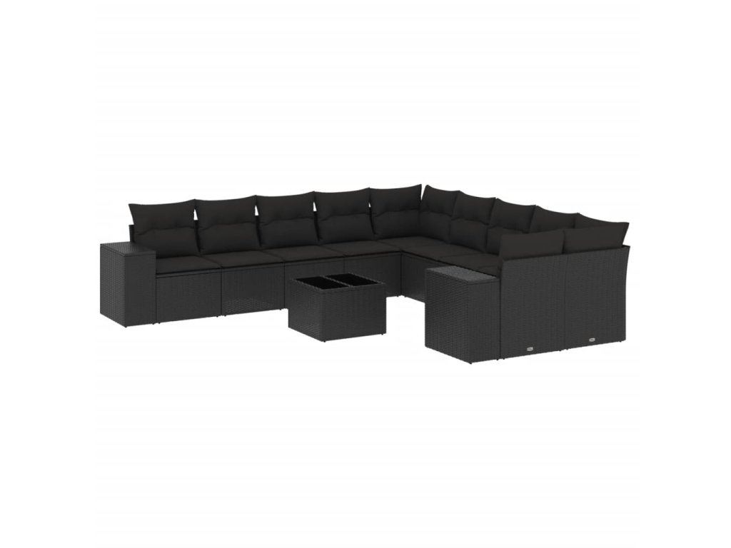 11dílná zahradní sedací souprava s poduškami černá polyratan 3255452