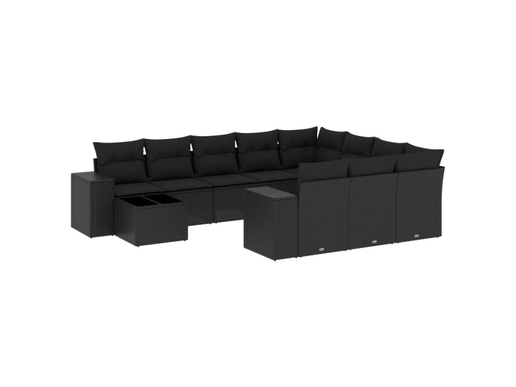 11dílná zahradní sedací souprava s poduškami černá polyratan 3255462