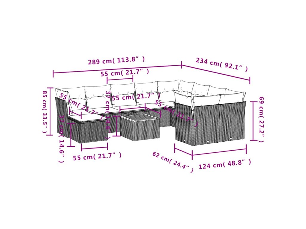 11dílná zahradní sedací souprava s poduškami černá polyratan 3256301