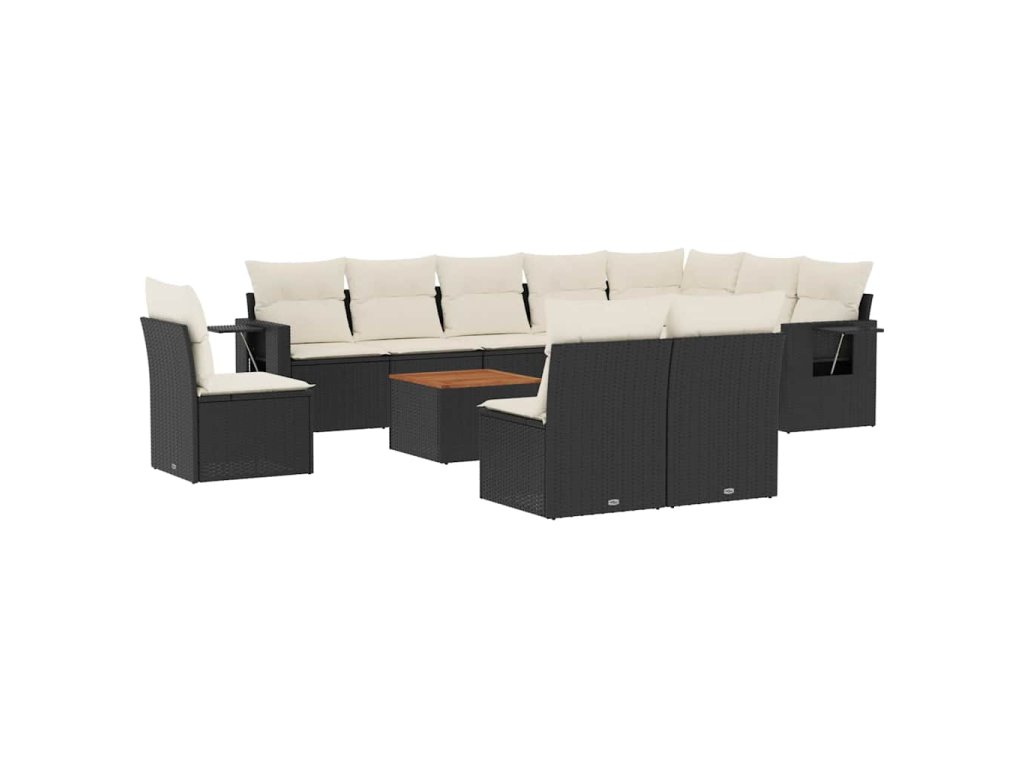 11dílná zahradní sedací souprava s poduškami černá polyratan 3256945