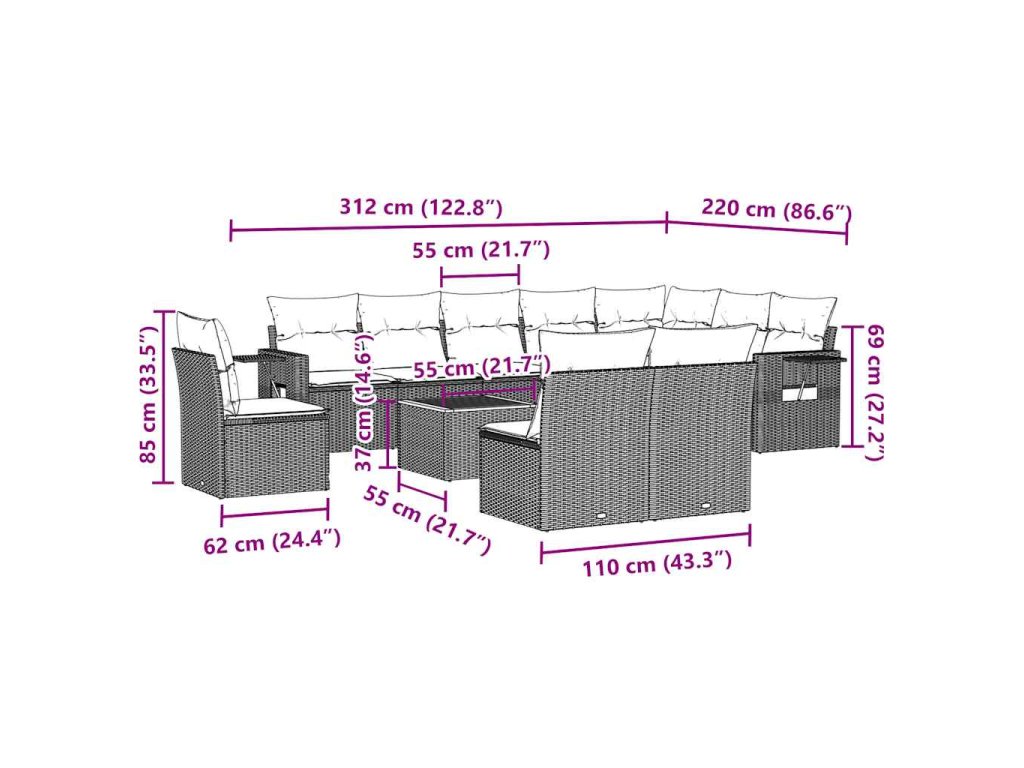 Tato zahradní sedací souprava je dokonalým doplňkem vaší zahrady, terasy nebo dvorku a poskytne vám pohodlné a příjemné místo, kde si můžete povídat s rodinou a přáteli nebo jen tak odpočívat a užívat si pobyt venku.