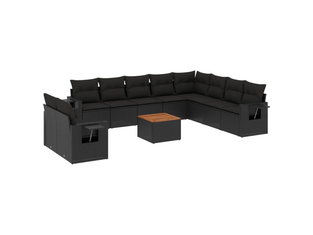 11dílná zahradní sedací souprava s poduškami černá polyratan 3256965