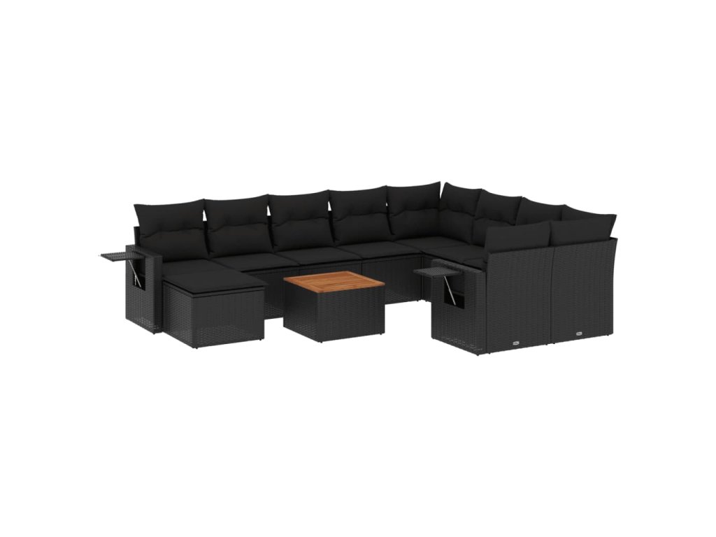 11dílná zahradní sedací souprava s poduškami černá polyratan 3257182