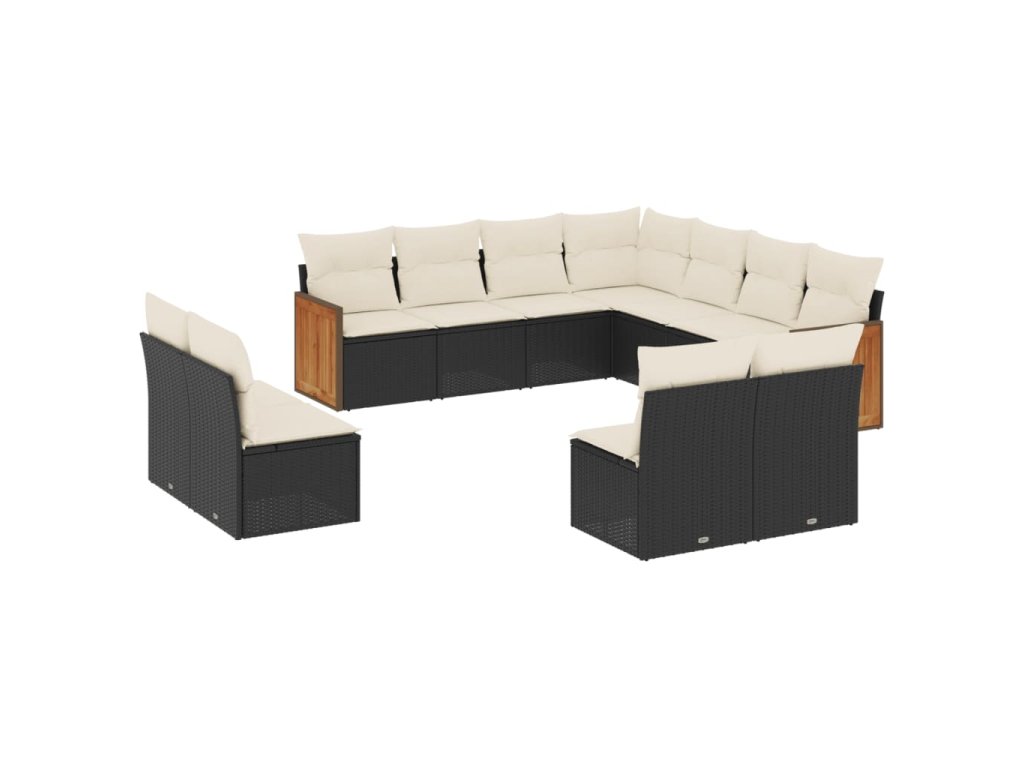 11dílná zahradní sedací souprava s poduškami černá polyratan 3260166