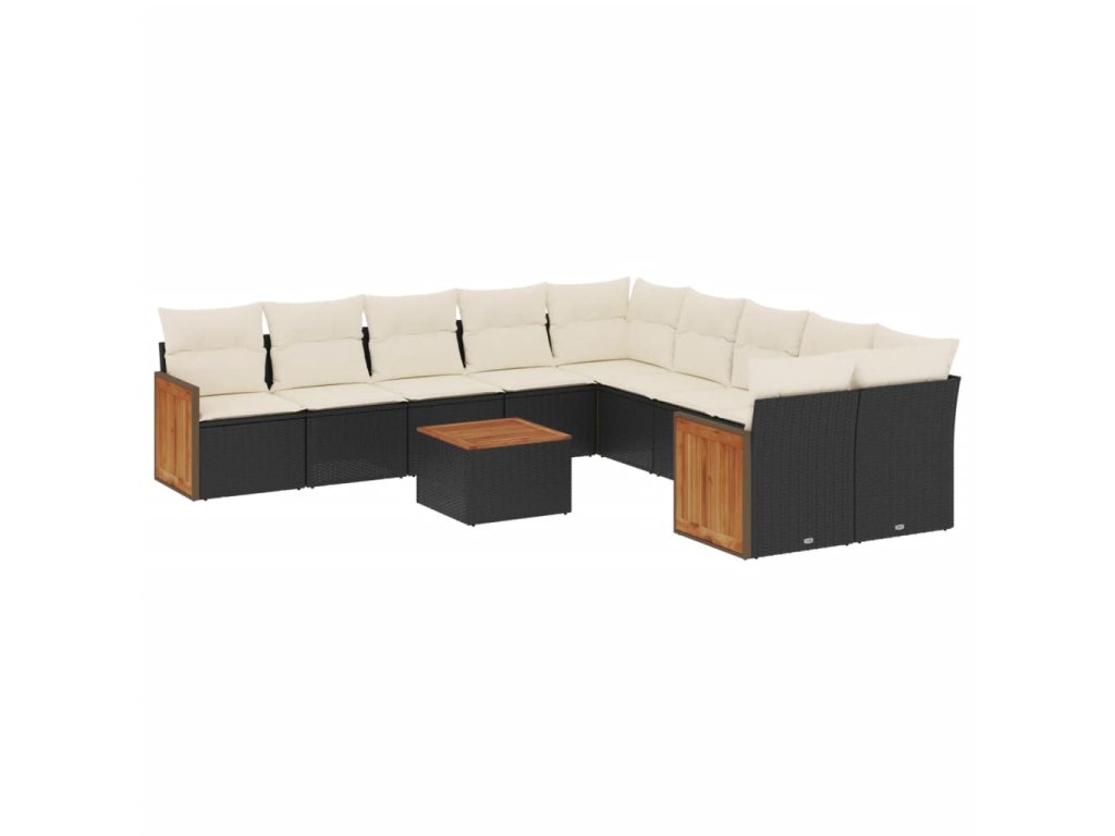 11dílná zahradní sedací souprava s poduškami černá polyratan 3260439