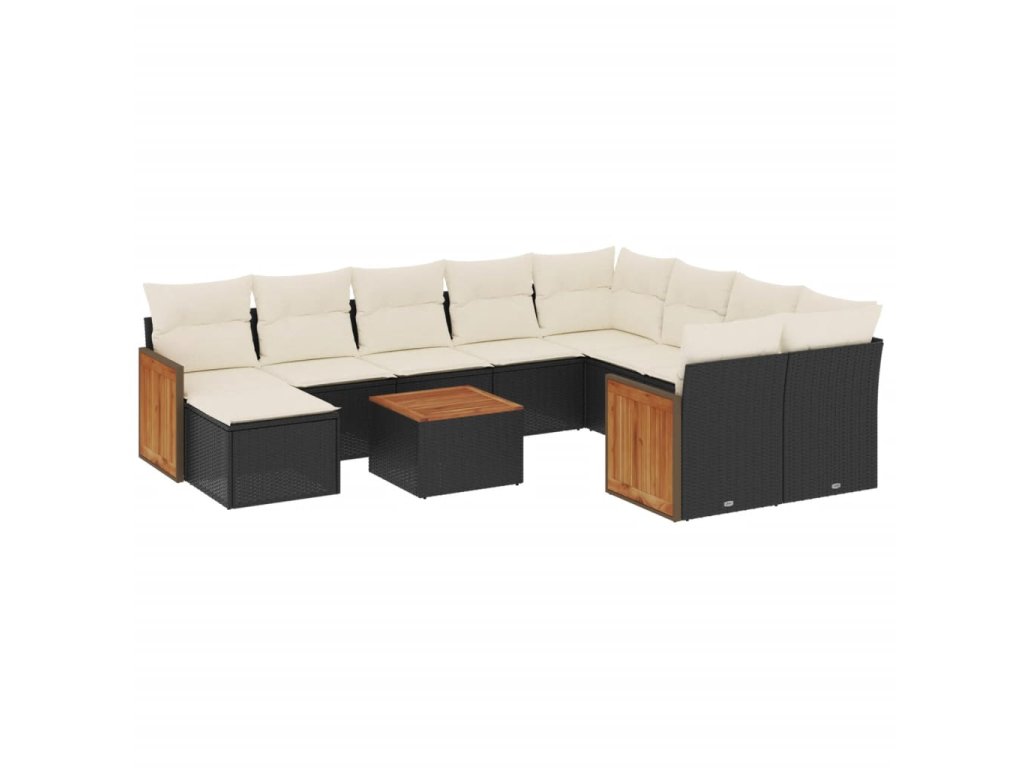 11dílná zahradní sedací souprava s poduškami černá polyratan 3260642