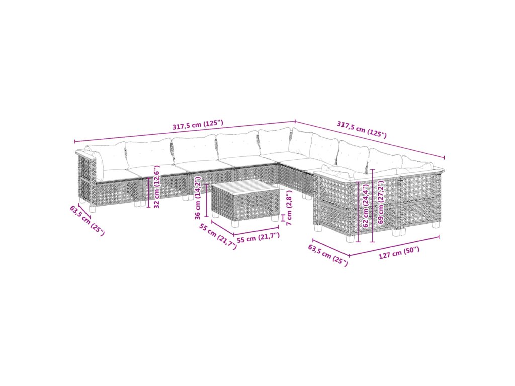 11dílná zahradní sedací souprava s poduškami černá polyratan 3262052