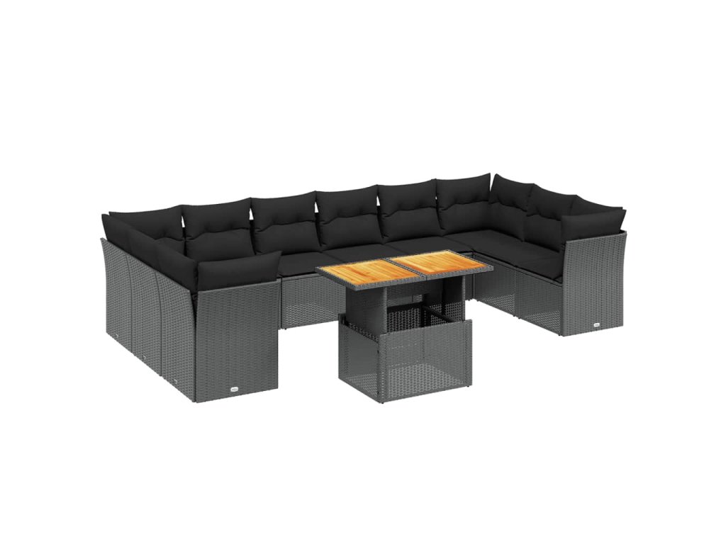 11dílná zahradní sedací souprava s poduškami černá polyratan 3271020