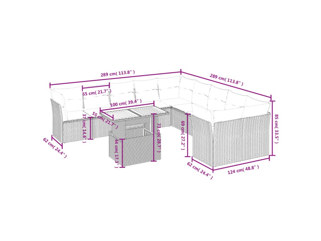 Tato zahradní sedací souprava je dokonalým doplňkem vaší zahrady, terasy nebo dvorku a poskytne vám pohodlné a příjemné místo, kde si můžete povídat s rodinou a přáteli nebo jen tak odpočívat a užívat si pobyt venku.