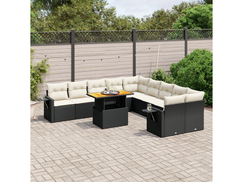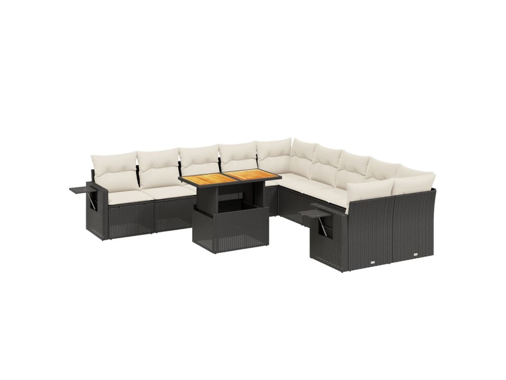 11dílná zahradní sedací souprava s poduškami černá polyratan 3271945