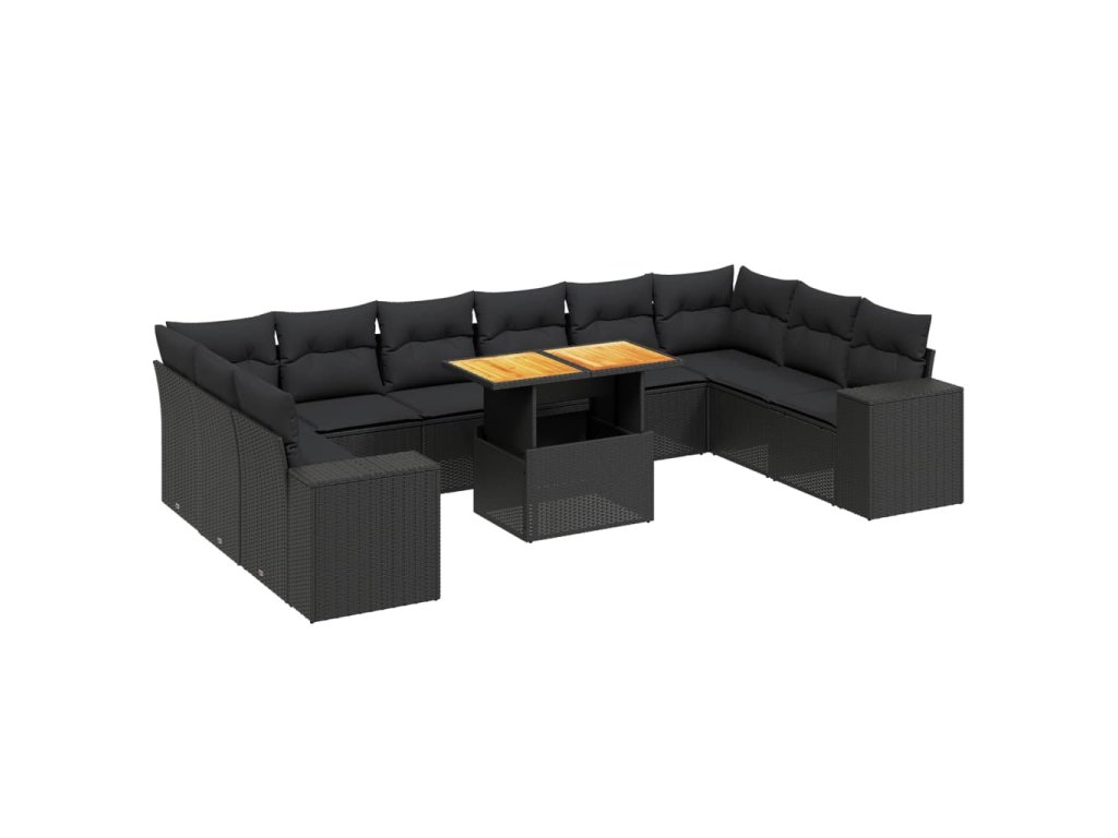 11dílná zahradní sedací souprava s poduškami černá polyratan 3272805