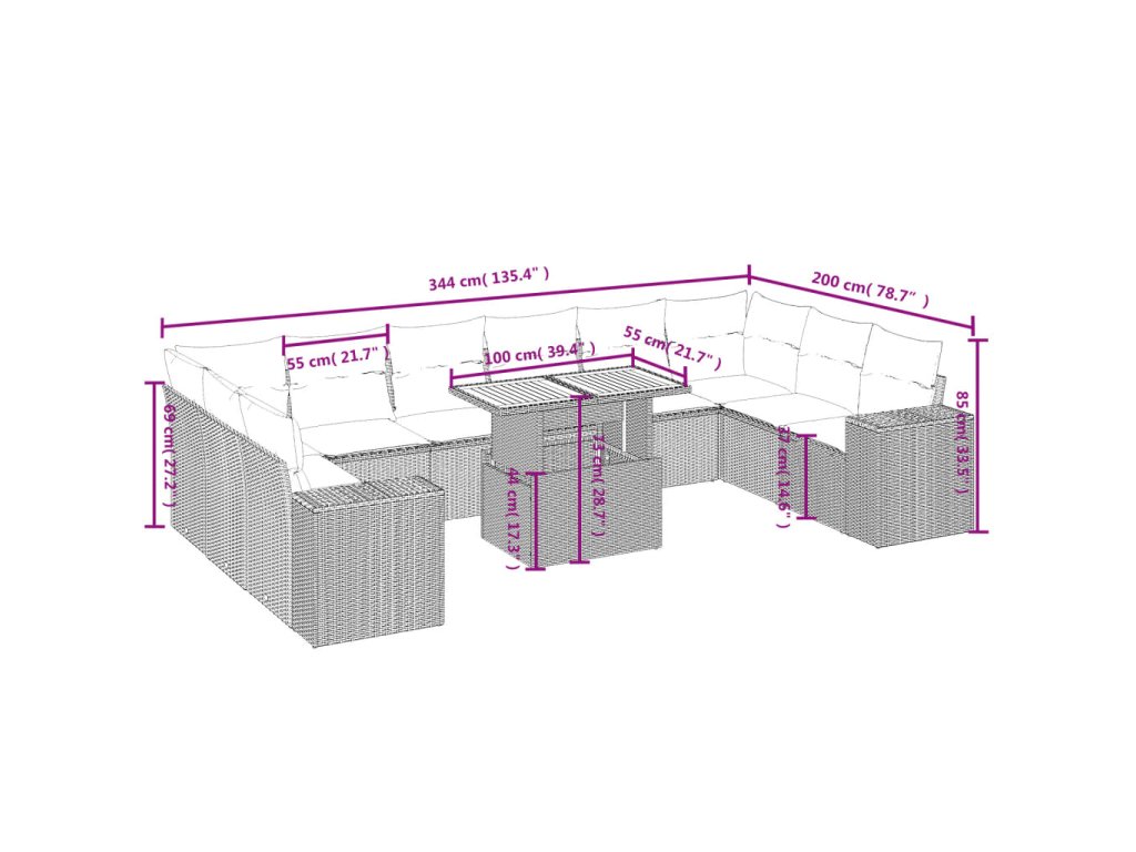Tato zahradní sedací souprava je dokonalým doplňkem vaší zahrady, terasy nebo dvorku a poskytne vám pohodlné a příjemné místo, kde si můžete povídat s rodinou a přáteli nebo jen tak odpočívat a užívat si pobyt venku.