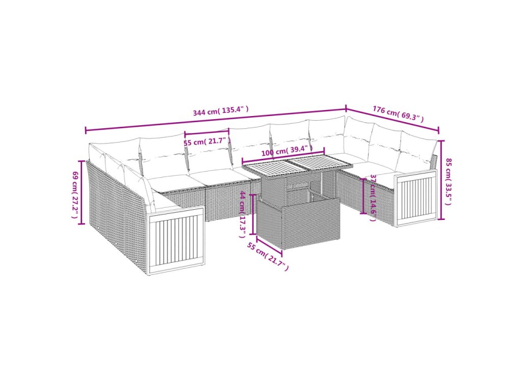 Tato zahradní sedací souprava je dokonalým doplňkem vaší zahrady, terasy nebo dvorku a poskytne vám pohodlné a příjemné místo, kde si můžete povídat s rodinou a přáteli nebo jen tak odpočívat a užívat si pobyt venku.