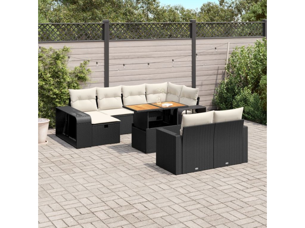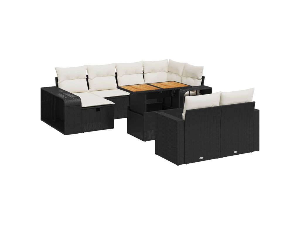 11dílná zahradní sedací souprava s poduškami černá polyratan 3276512