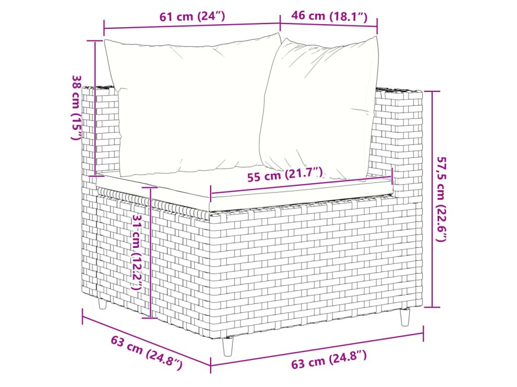 - Rozměry podušky na sedák: 55/63 x 55 x 3 cm (Š x H x T)