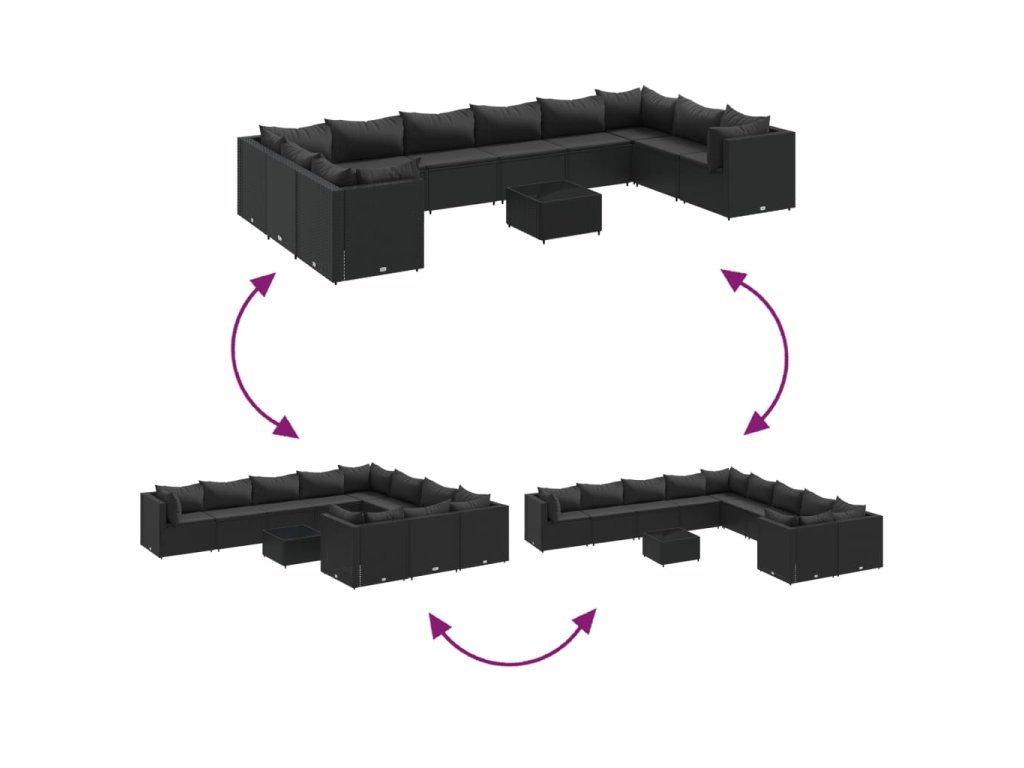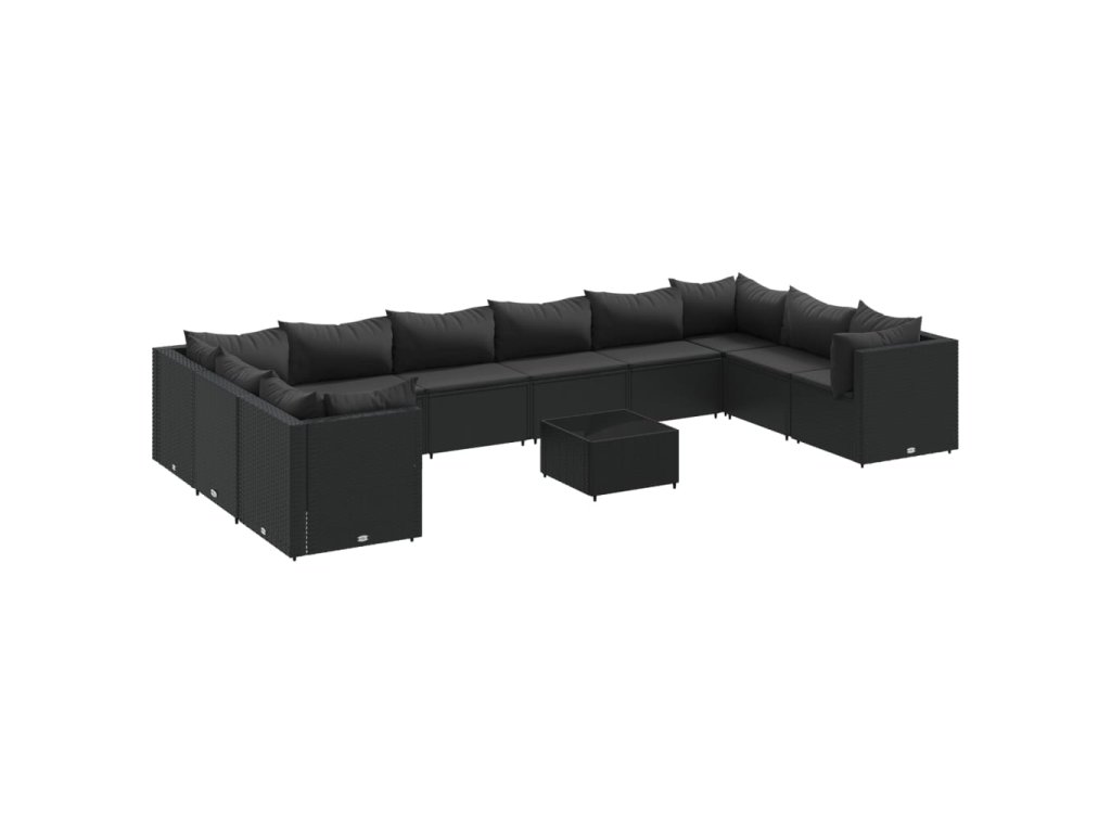 11dílná zahradní sedací souprava s poduškami černá polyratan 3308291