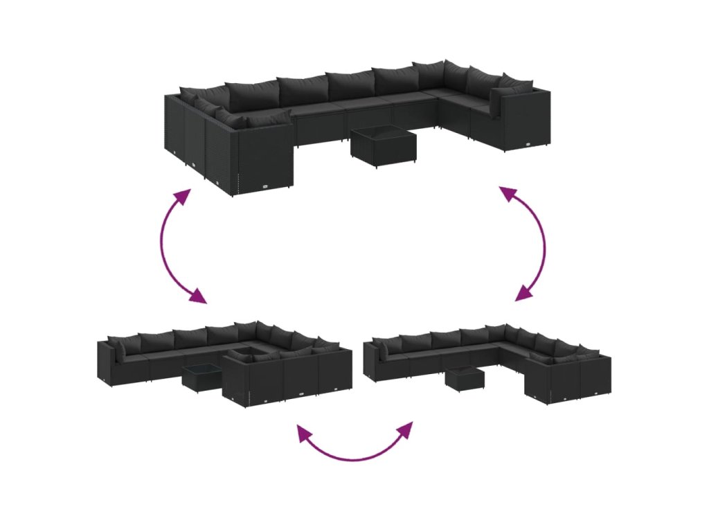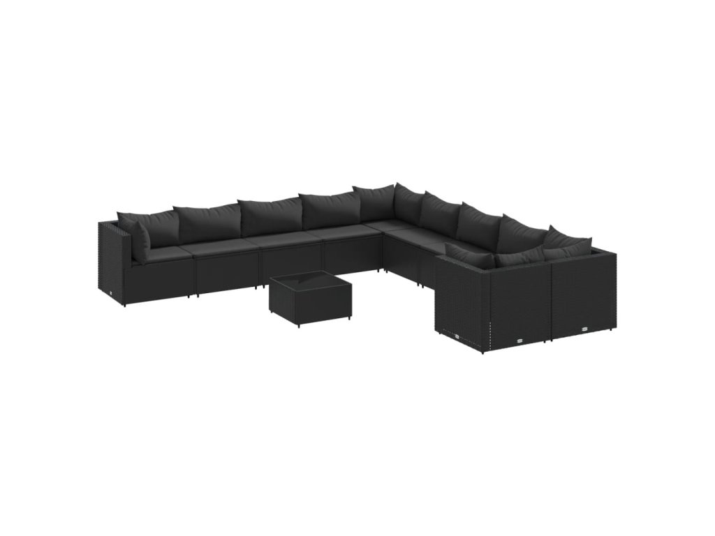 11dílná zahradní sedací souprava s poduškami černá polyratan 3308355