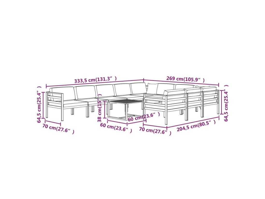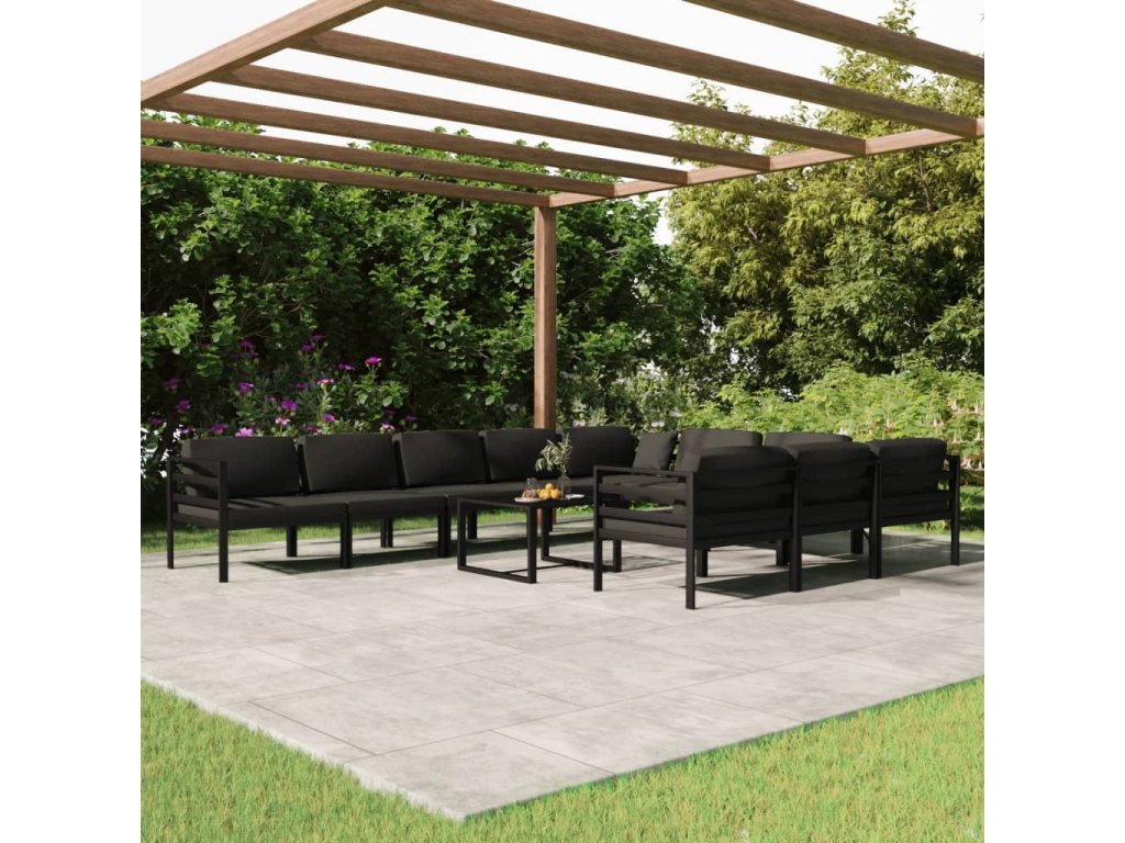 11dílná zahradní sedací souprava s poduškami hliník antracitová 3107826