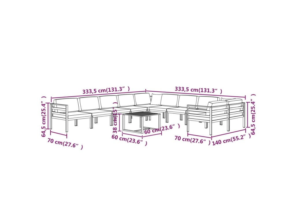 11dílná zahradní sedací souprava s poduškami hliník antracitová 3107828