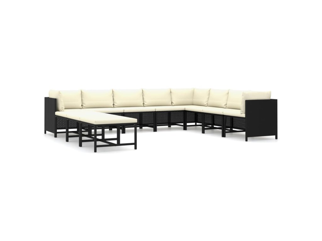 11dílná zahradní sedací souprava s poduškami polyratan černá 3059802