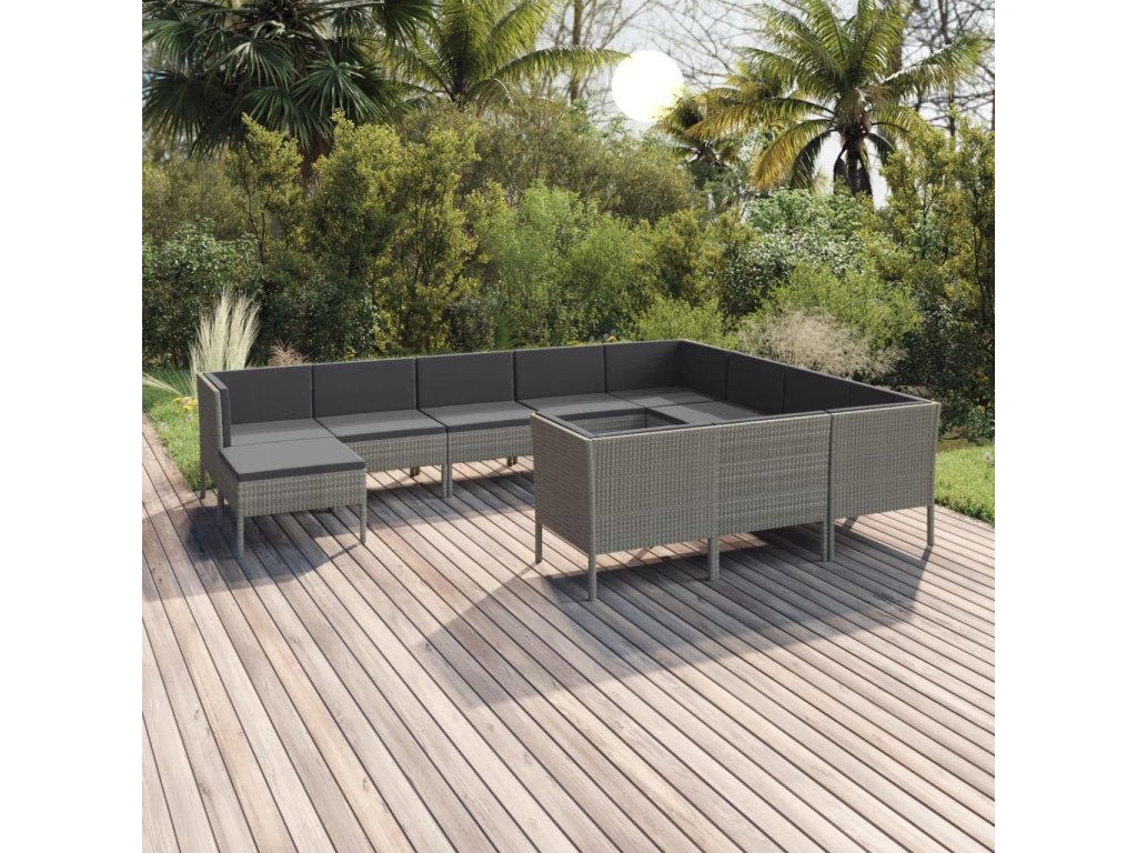 11dílná zahradní sedací souprava s poduškami polyratan šedá 3094510