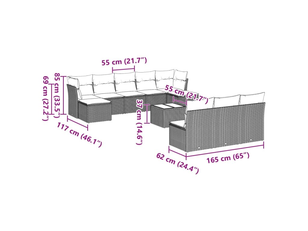 Tato zahradní sedací souprava je dokonalým doplňkem vaší zahrady, terasy nebo dvorku a poskytne vám pohodlné a příjemné místo, kde si můžete povídat s rodinou a přáteli nebo jen tak odpočívat a užívat si pobyt venku.