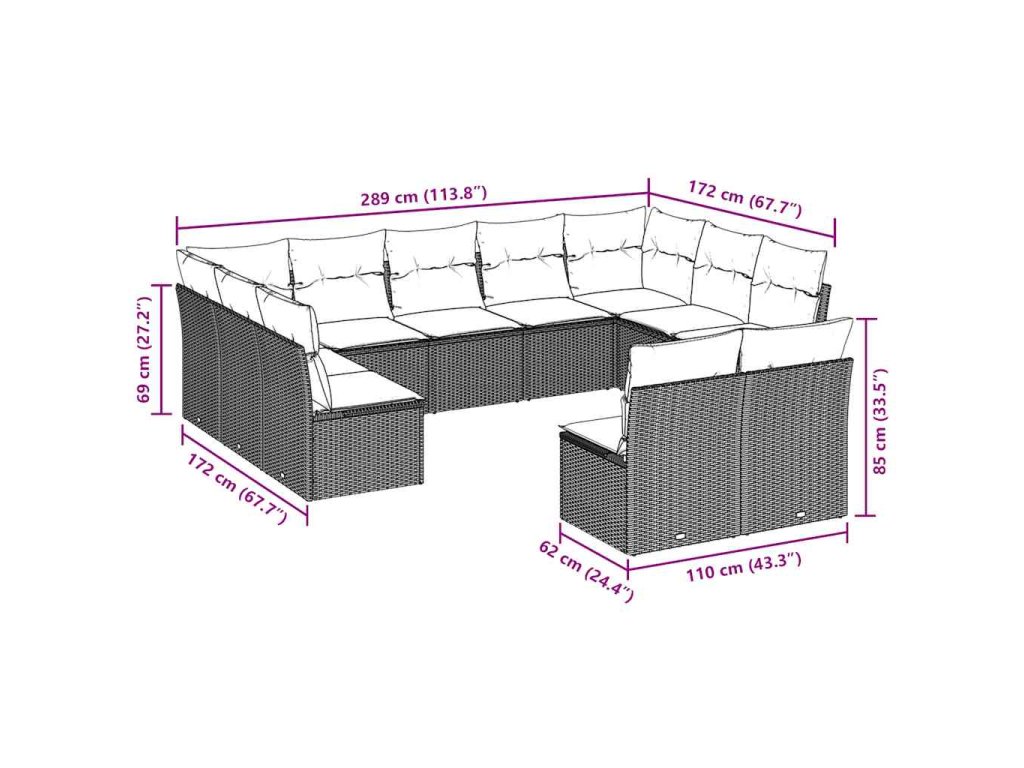 11dílná zahradní sedací souprava s poduškami šedá polyratan 3218352