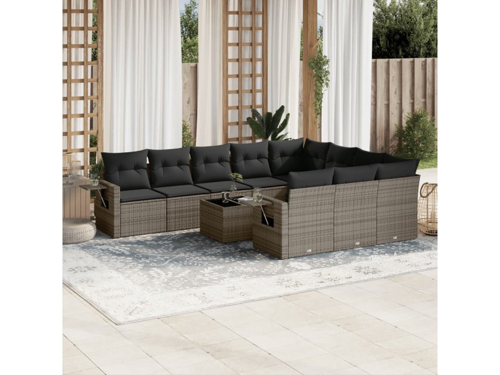11dílná zahradní sedací souprava s poduškami šedá polyratan 3220699