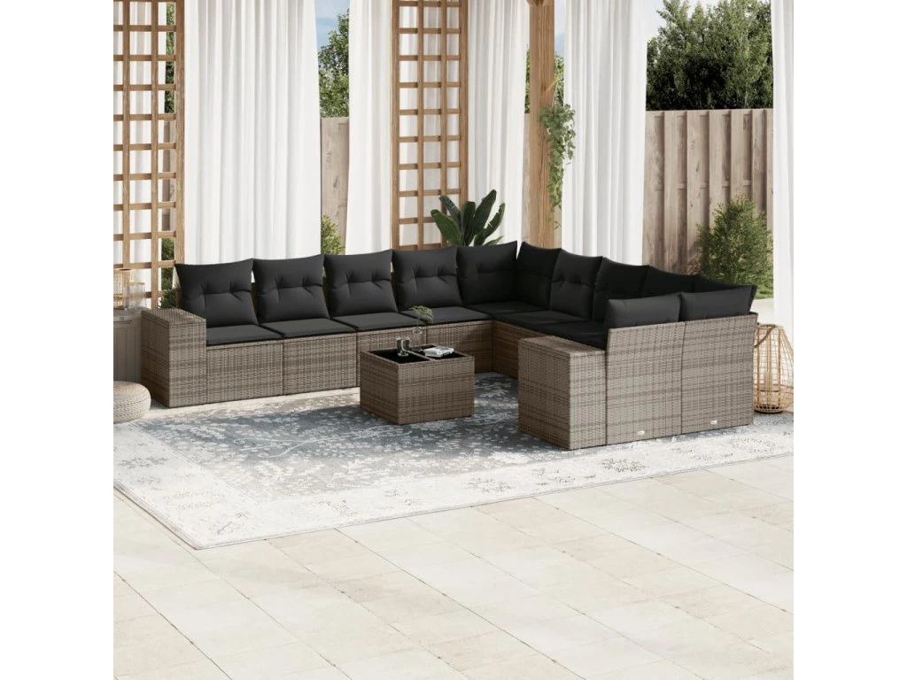 11dílná zahradní sedací souprava s poduškami šedá polyratan 3223119