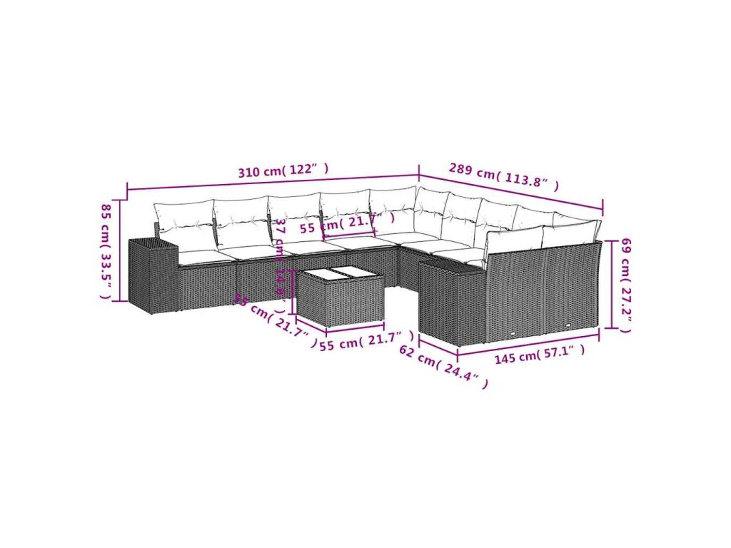 11dílná zahradní sedací souprava s poduškami šedá polyratan 3223121