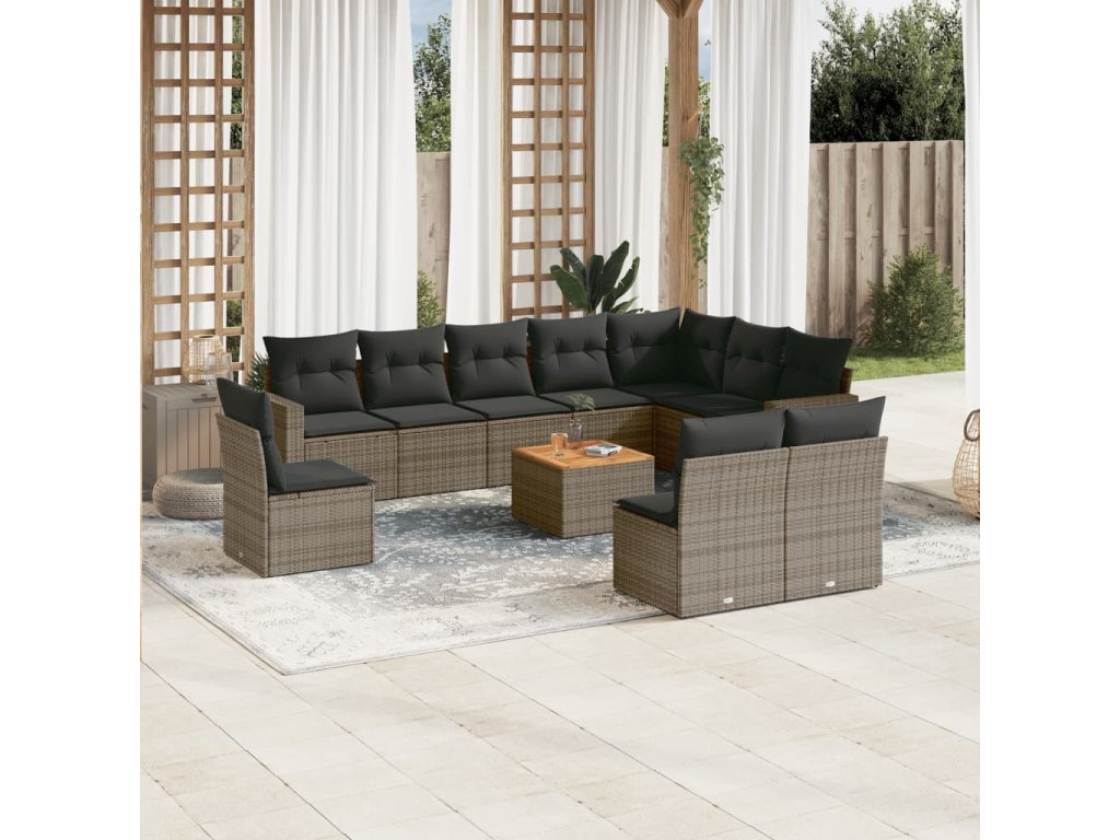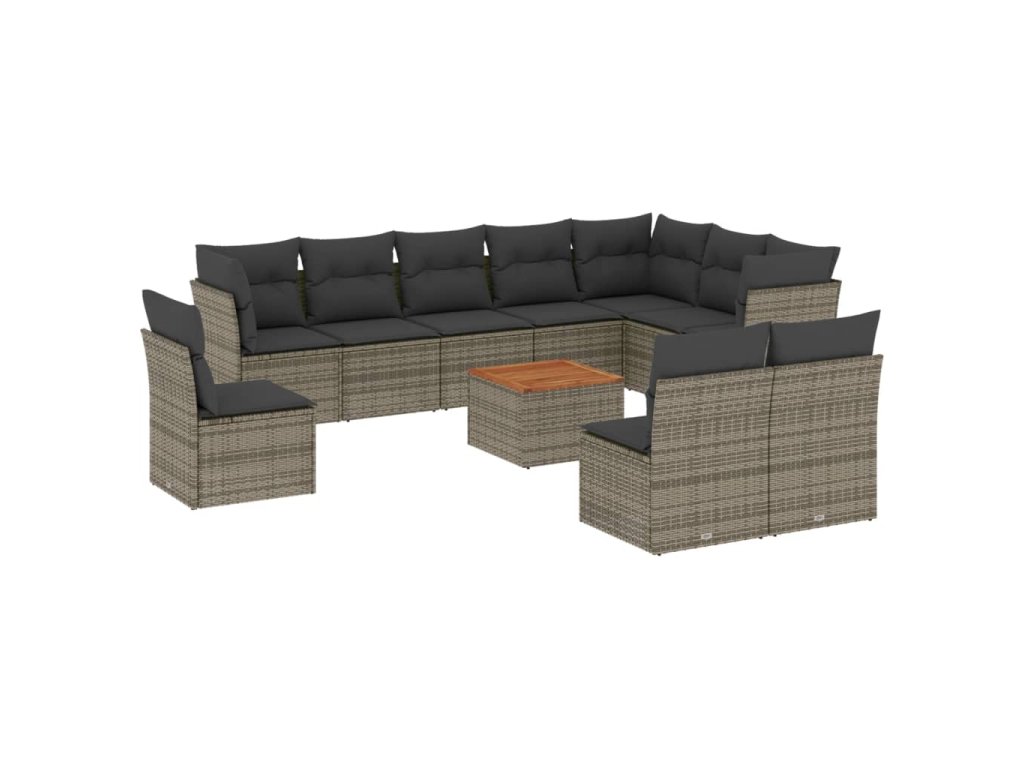 11dílná zahradní sedací souprava s poduškami šedá polyratan 3224177