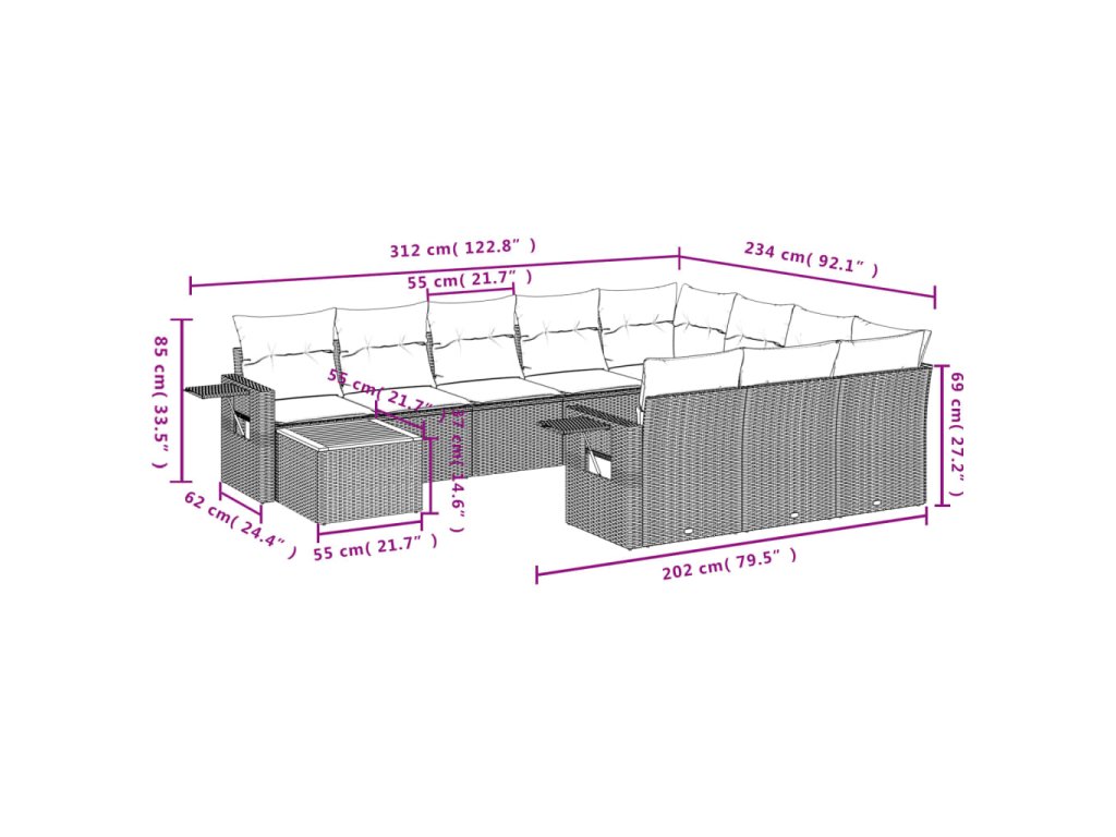 11dílná zahradní sedací souprava s poduškami šedá polyratan 3224751
