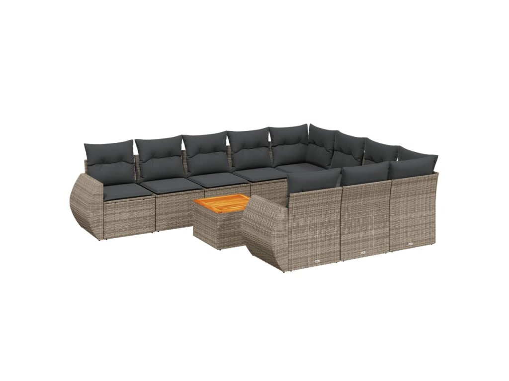 11dílná zahradní sedací souprava s poduškami šedá polyratan 3225185