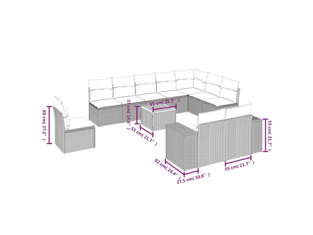 11dílná zahradní sedací souprava s poduškami šedá polyratan 3225500