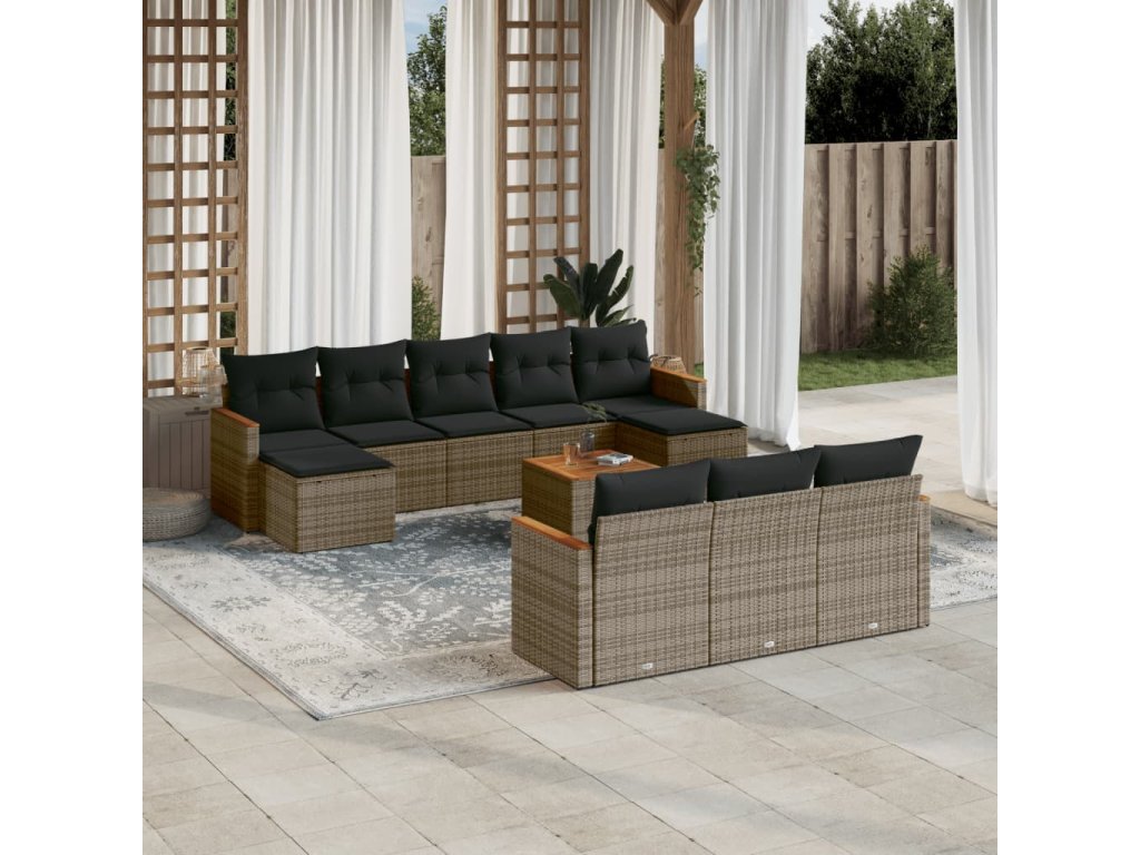 11dílná zahradní sedací souprava s poduškami šedá polyratan 3226424