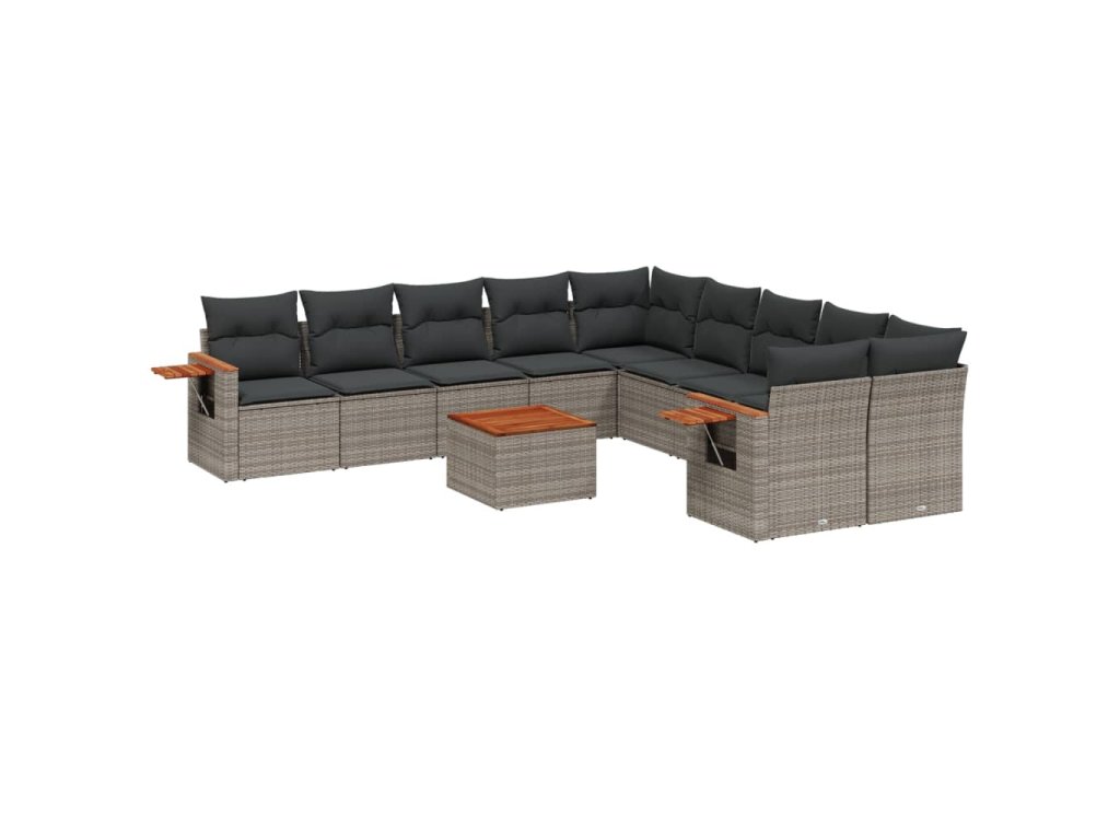 11dílná zahradní sedací souprava s poduškami šedá polyratan 3227201