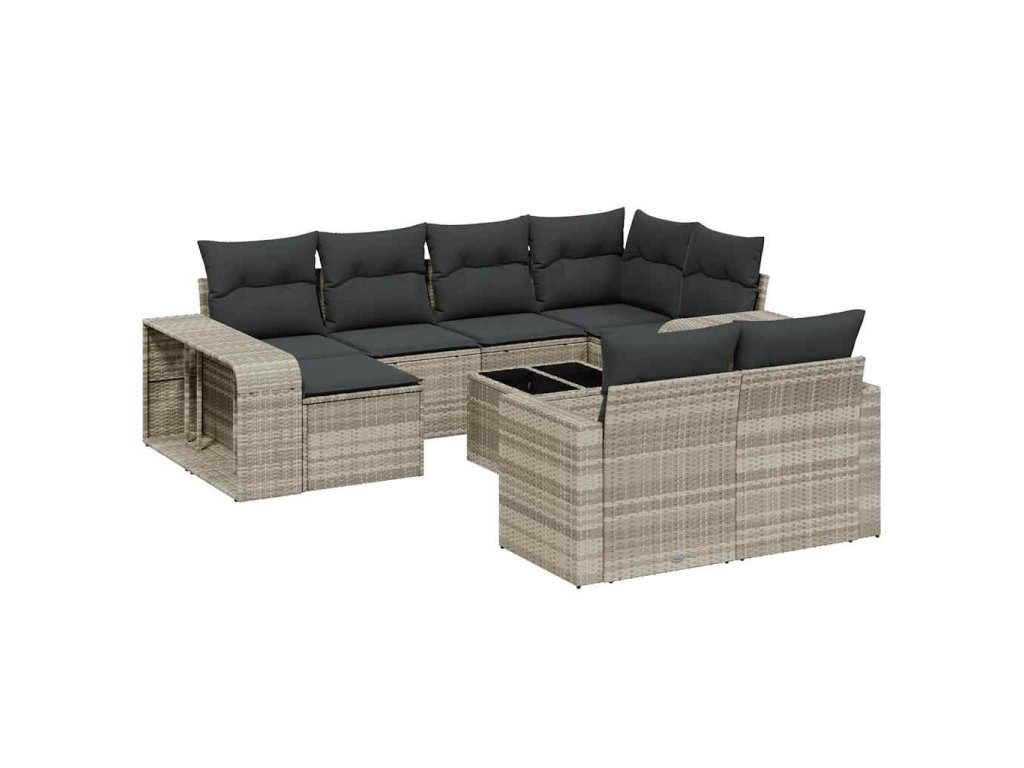 11dílná zahradní sedací souprava s poduškami šedá polyratan 3228912
