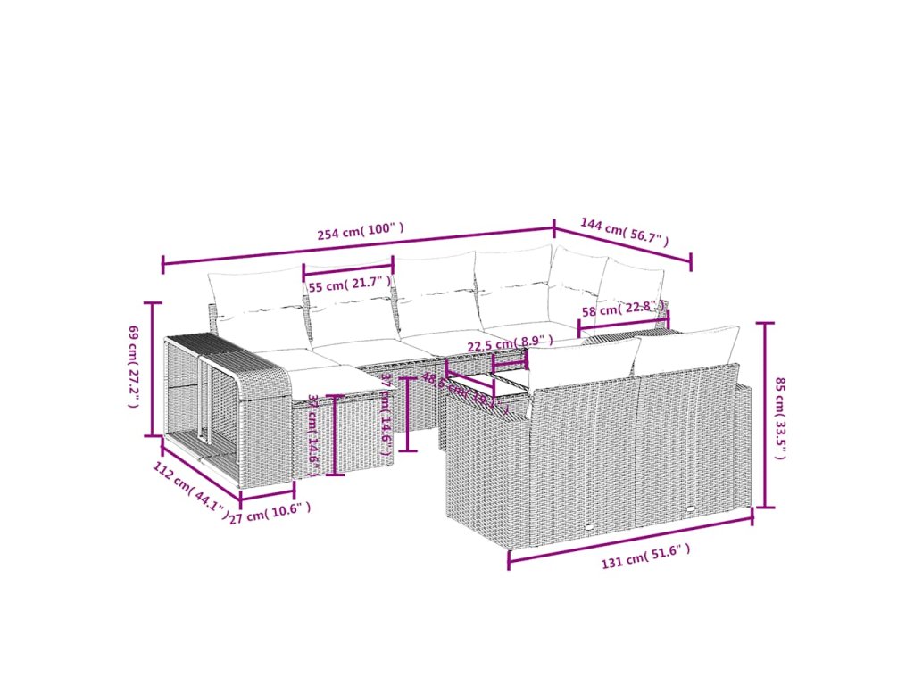 - Modulární design: Tato sada venkovního nábytku se vyznačuje modulární konstrukcí, je tedy zcela flexibilní a lze ji snadno přemisťovat, takže si můžete uspořádat venkovní nábytek dle vašich potřeb.