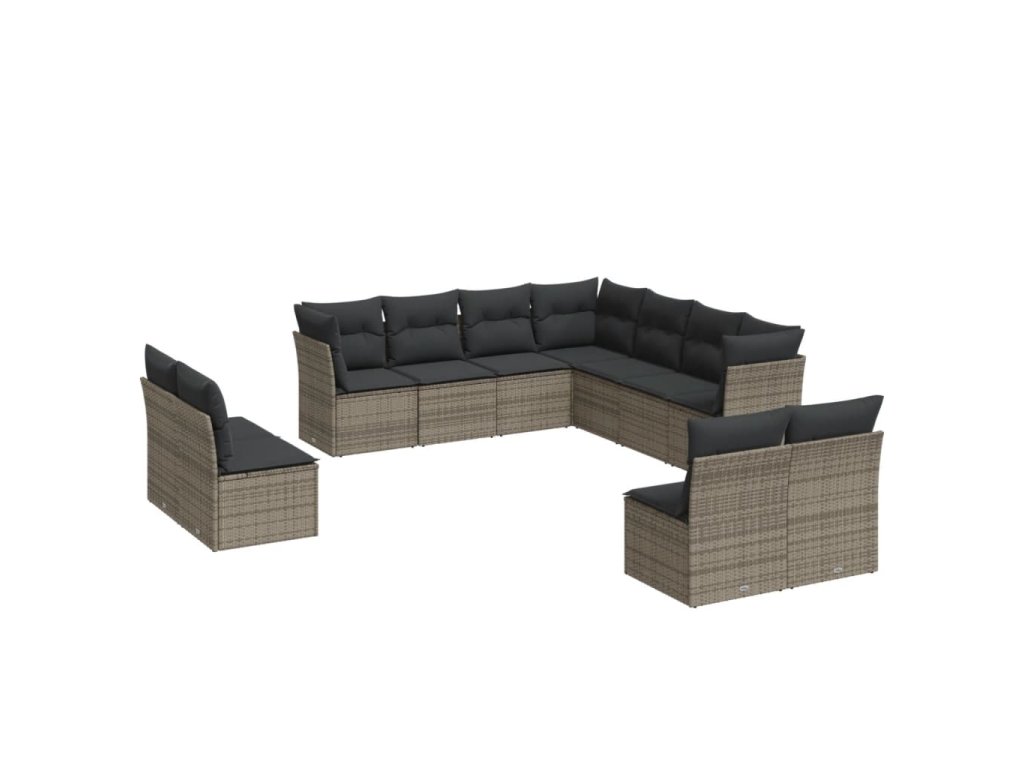 11dílná zahradní sedací souprava s poduškami šedá polyratan 3249659