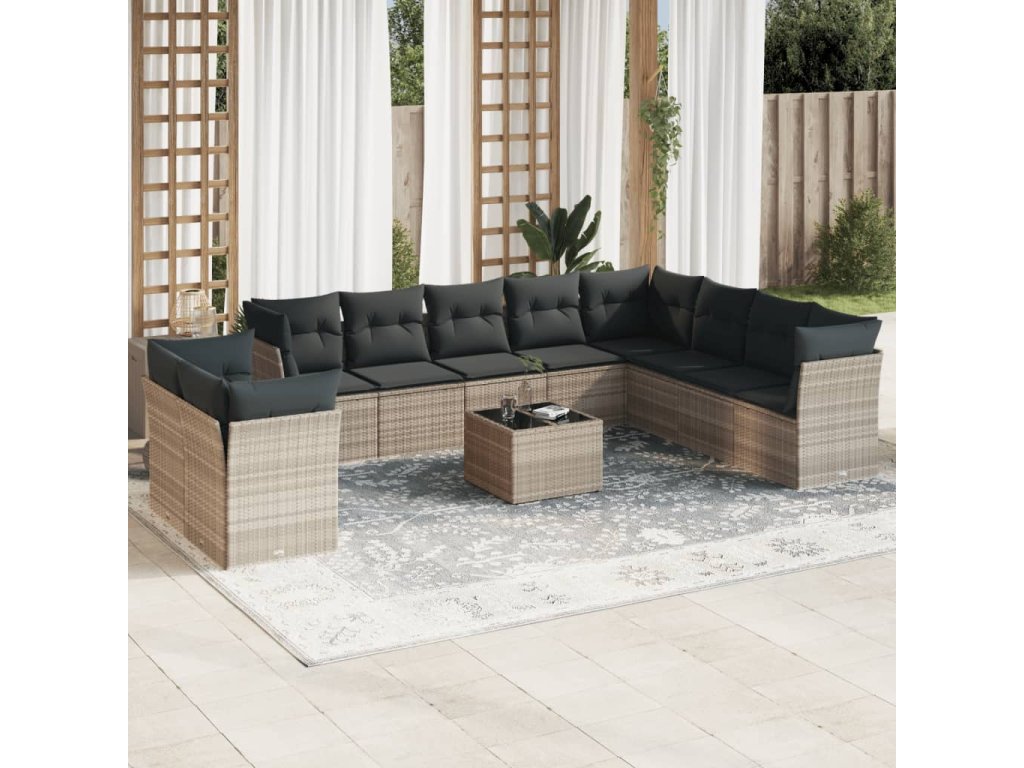 11dílná zahradní sedací souprava s poduškami šedá polyratan 3249711