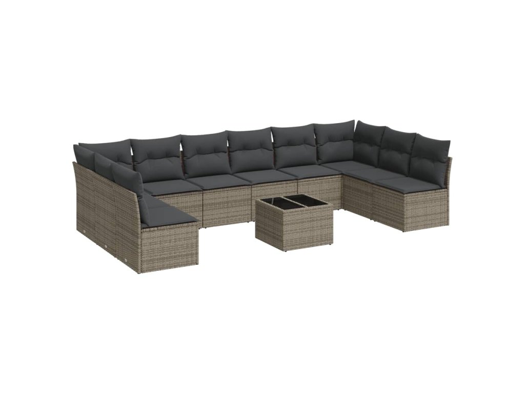 11dílná zahradní sedací souprava s poduškami šedá polyratan 3249939