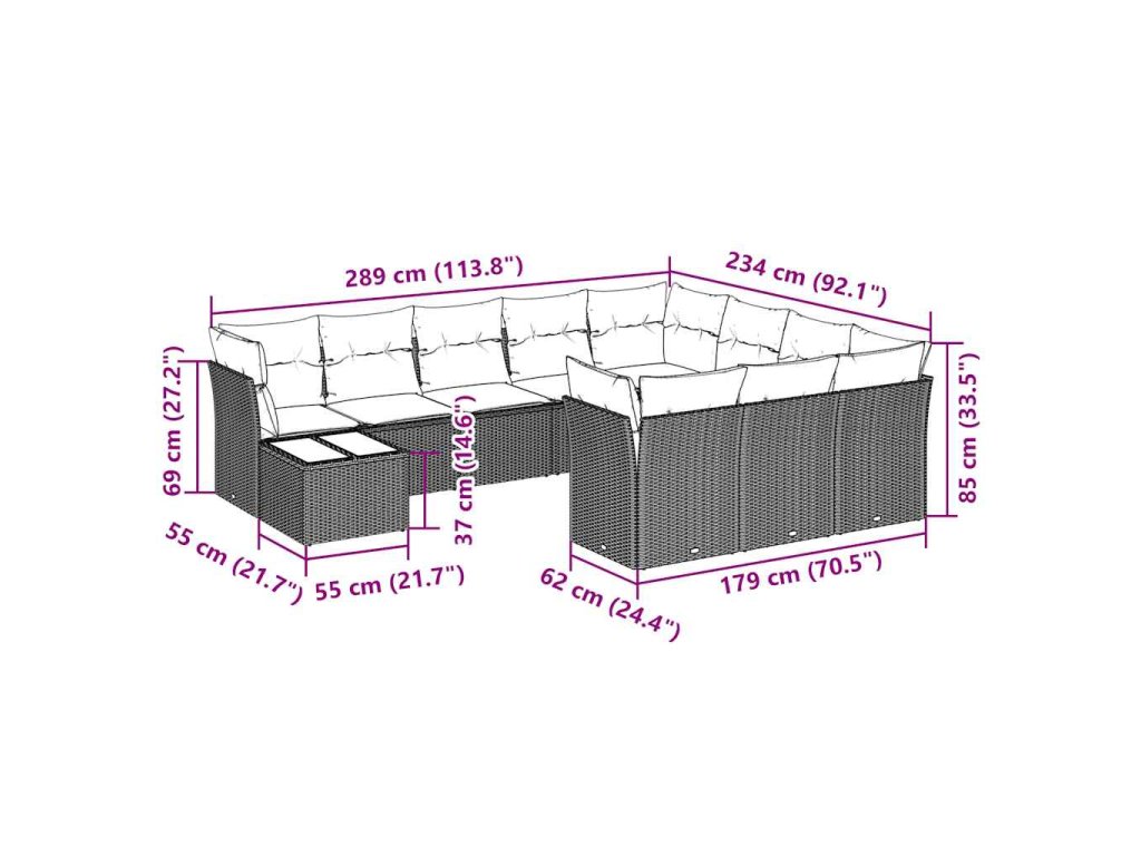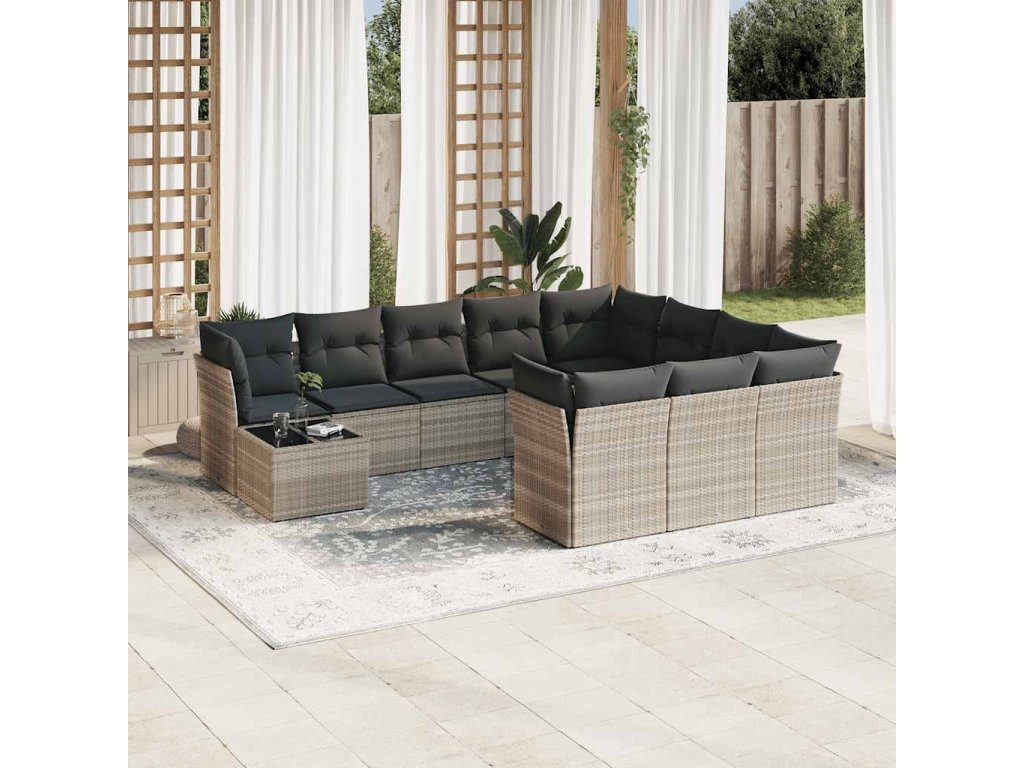 11dílná zahradní sedací souprava s poduškami šedá polyratan 3250101
