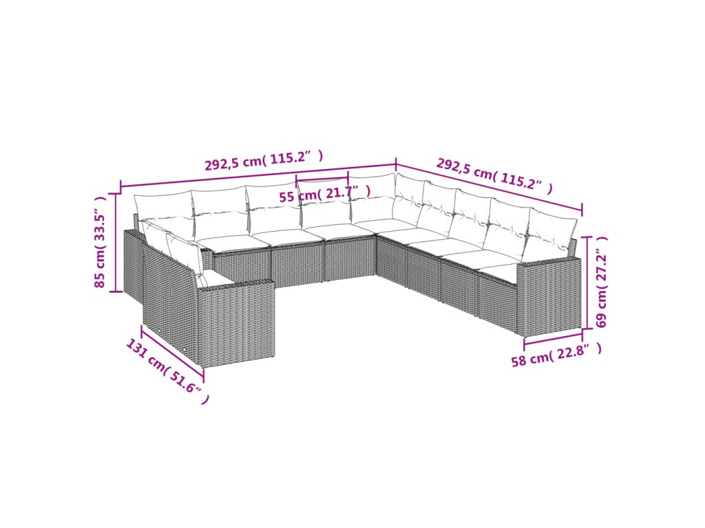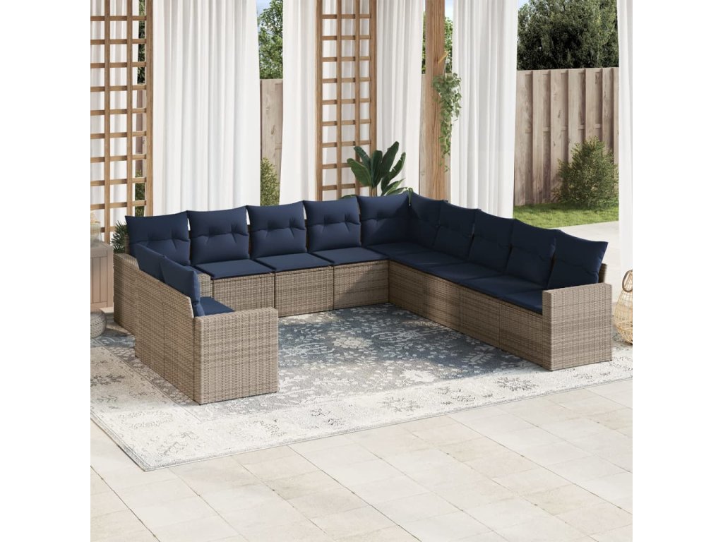 11dílná zahradní sedací souprava s poduškami šedá polyratan 3251528