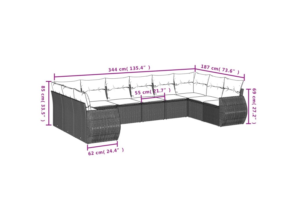 Tato zahradní sedací souprava je dokonalým doplňkem vaší zahrady, terasy nebo dvorku a poskytne vám pohodlné a příjemné místo, kde si můžete povídat s rodinou a přáteli nebo jen tak odpočívat a užívat si pobyt venku.