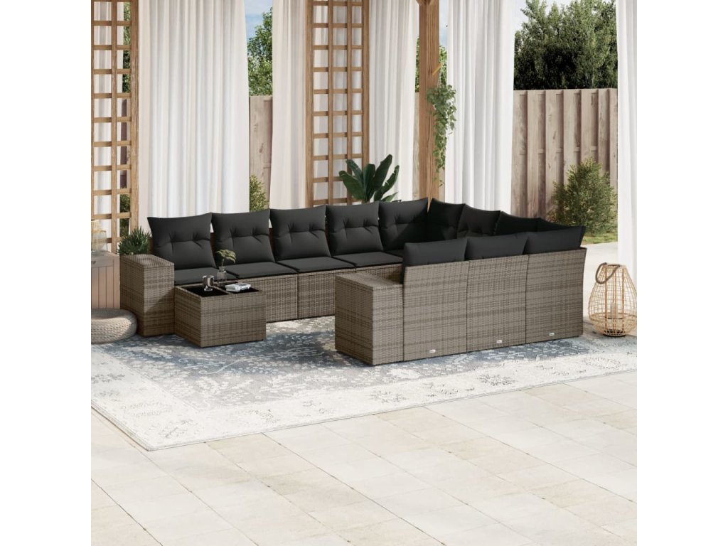 11dílná zahradní sedací souprava s poduškami šedá polyratan 3255467