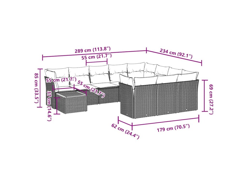 11dílná zahradní sedací souprava s poduškami šedá polyratan 3256180