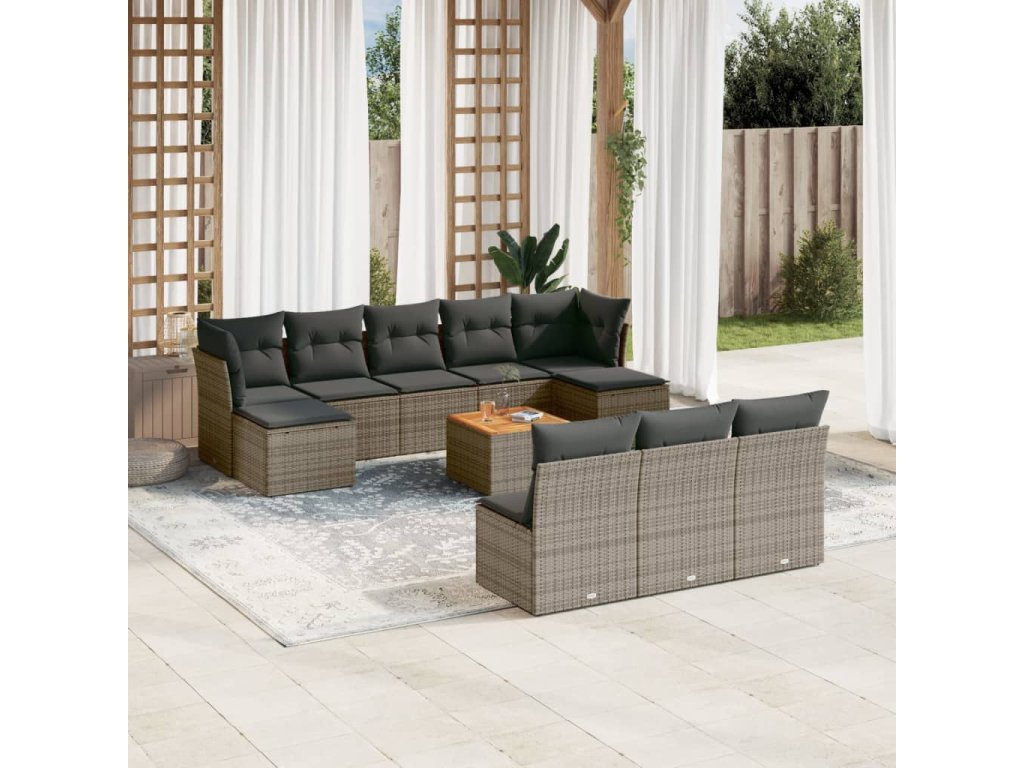 11dílná zahradní sedací souprava s poduškami šedá polyratan 3256200