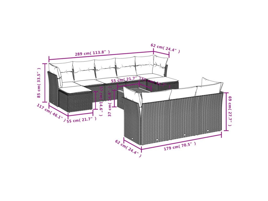 11dílná zahradní sedací souprava s poduškami šedá polyratan 3256214