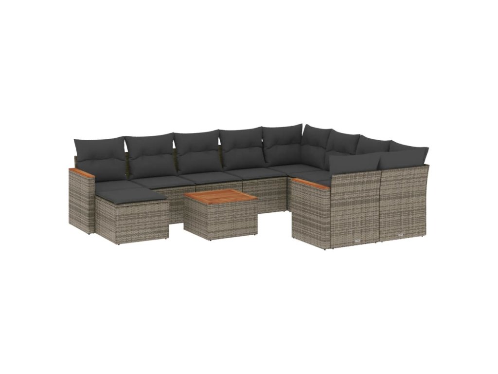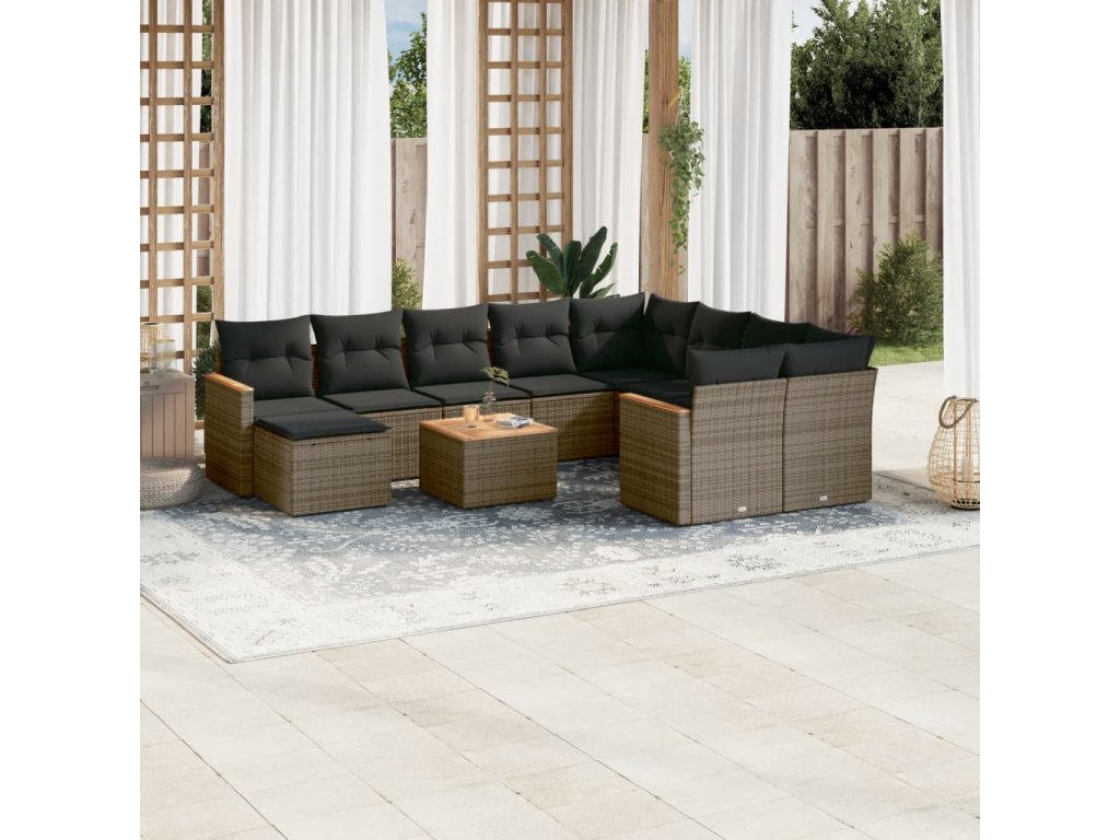 11dílná zahradní sedací souprava s poduškami šedá polyratan 3258966